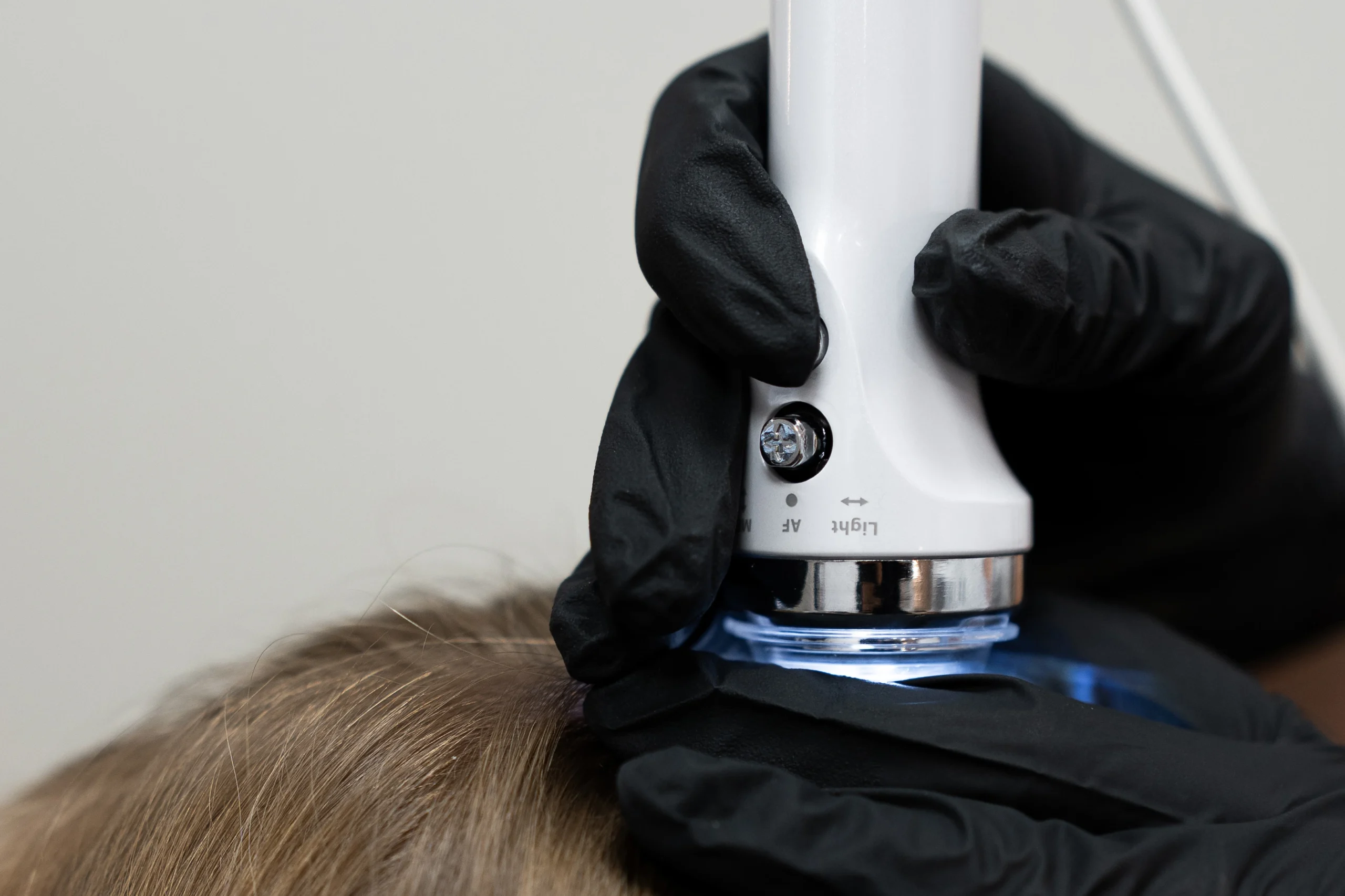 Pozwala dokładniej ocenić stan skóry głowy – światło eliminuje odbicia i refleksy, co pozwala na lepsze uwidocznienie struktury naskórka, porów i gruczołów łojowych.