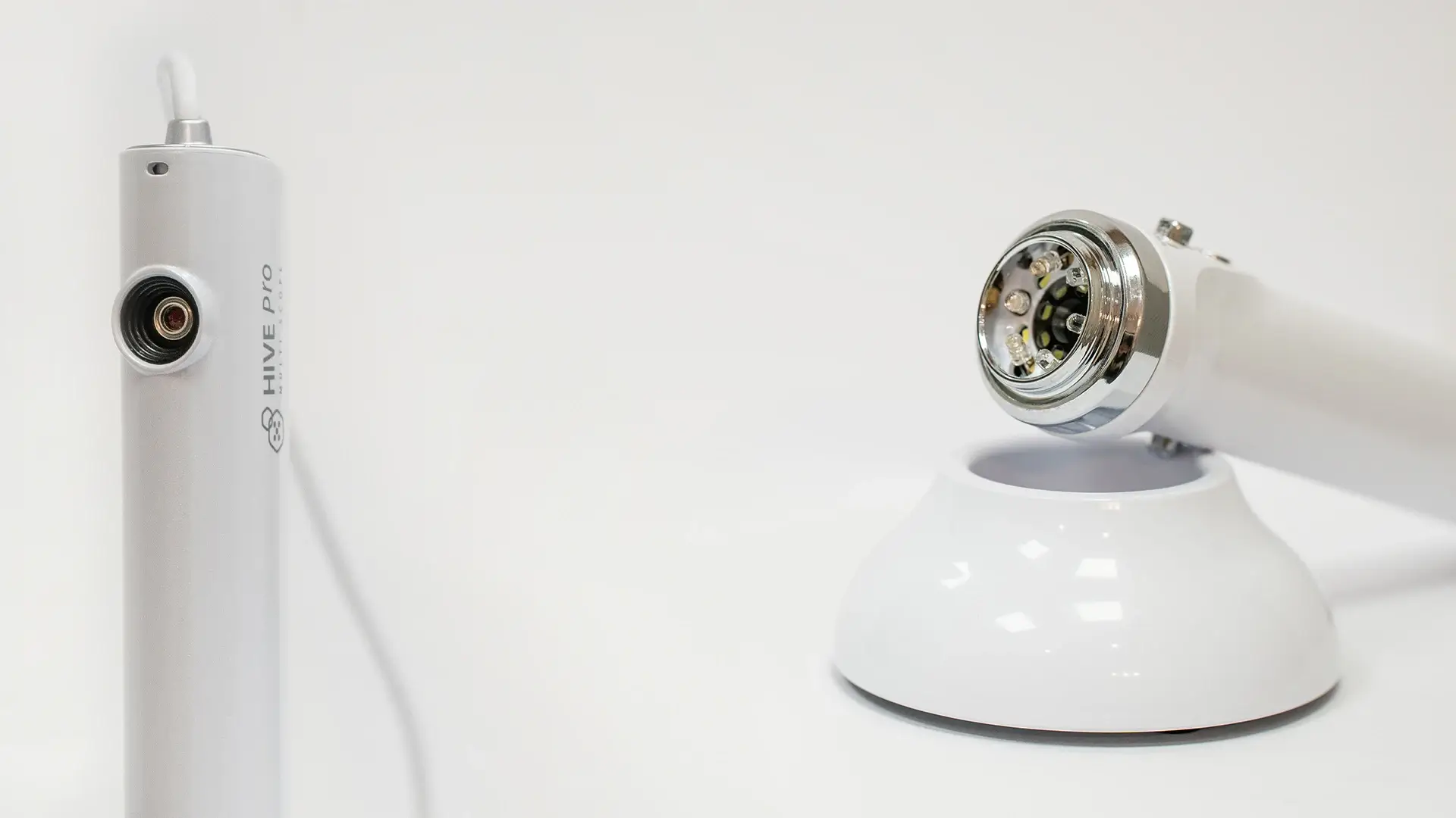 Kamera trychologiczna HIVE Pro pozwala obserwować i fotografować wybrany obiekt przy użyciu czterech różnych źródeł światła.